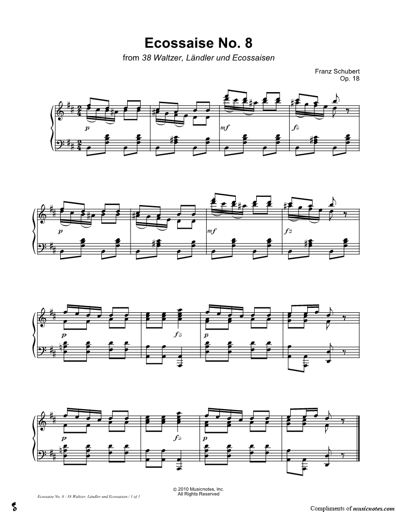 38 Waltzer, Ländler und Ecossaisen, Opus 18: Ecossaise No. 8 |