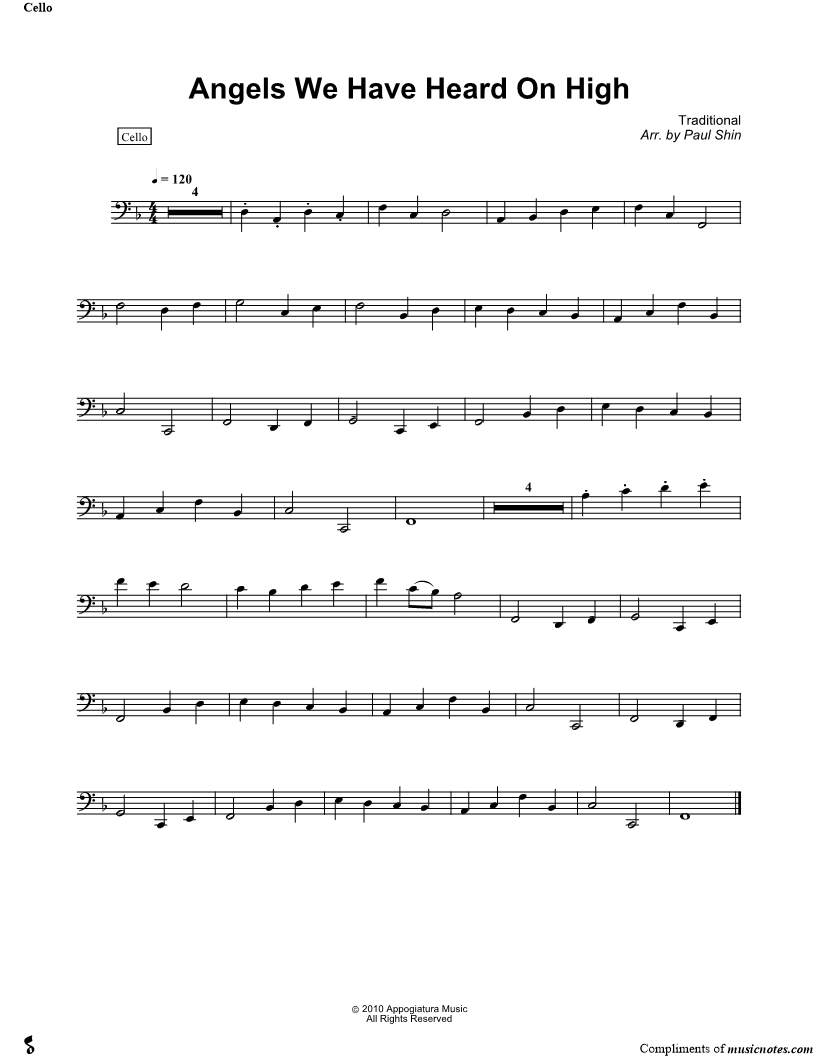 Angels We Have Heard on High - Cello |