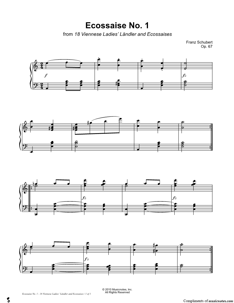 18 Viennese Ladies' Ländler and Ecossaises, Opus 67: Ecossaise No. 1 |