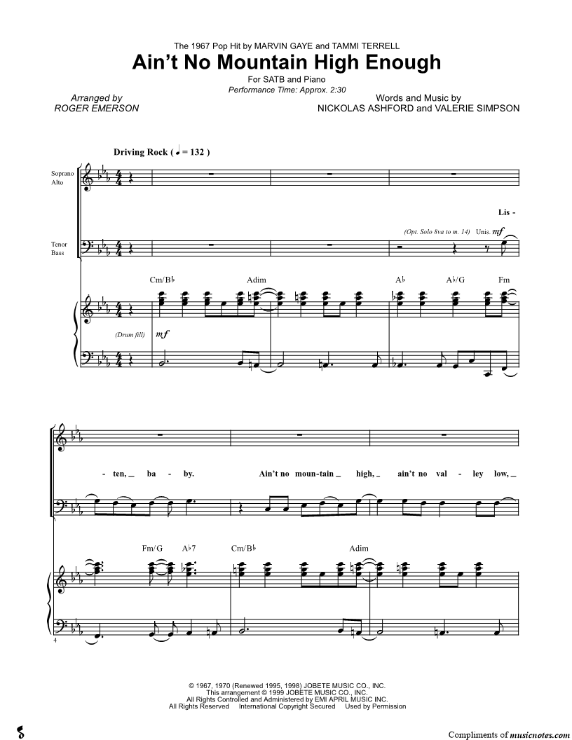 Ain't No Mountain High Enough - SATB |