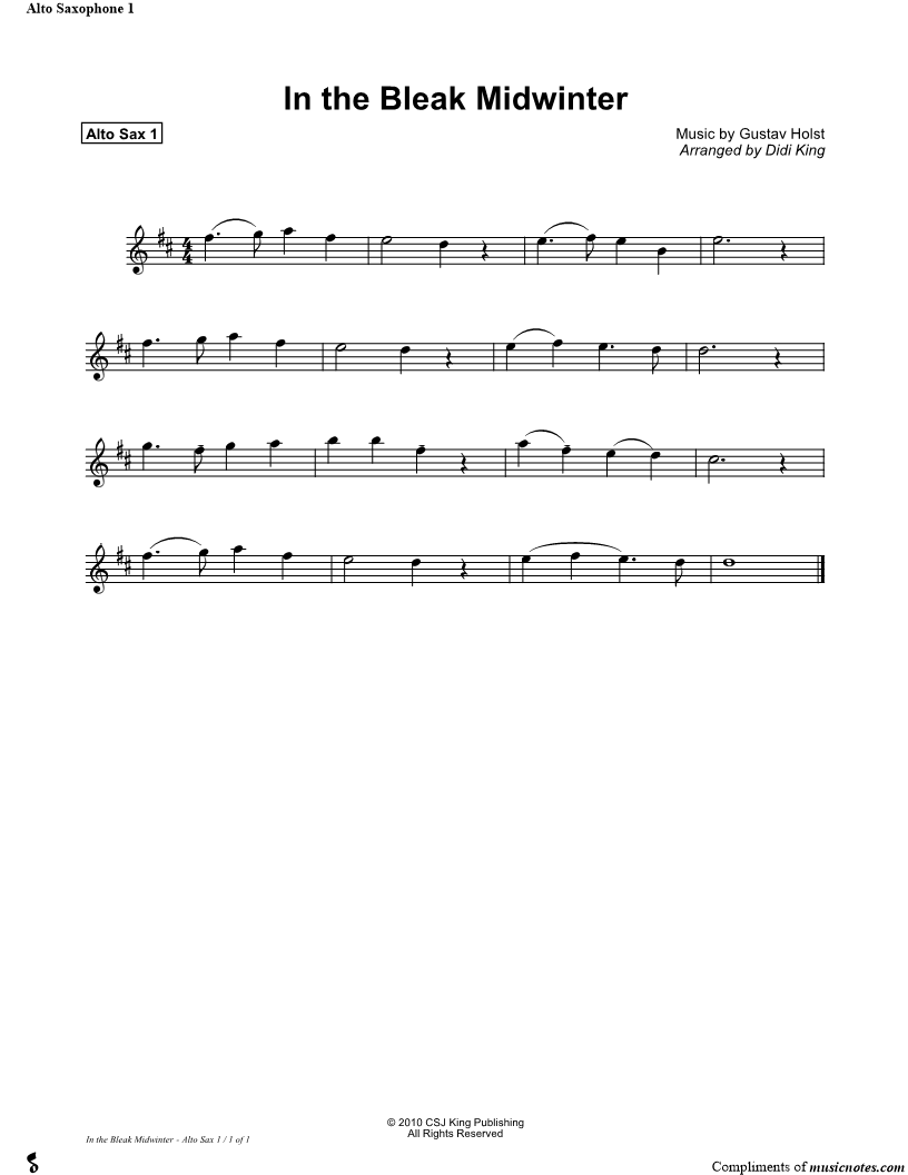 In the Bleak Midwinter - Alto Saxophone (Part 1) |