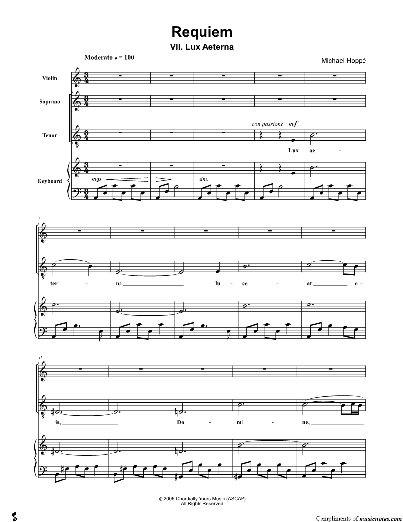Requiem, VII. Lux Aeterna - Violin, Soprano, Tenor and Piano