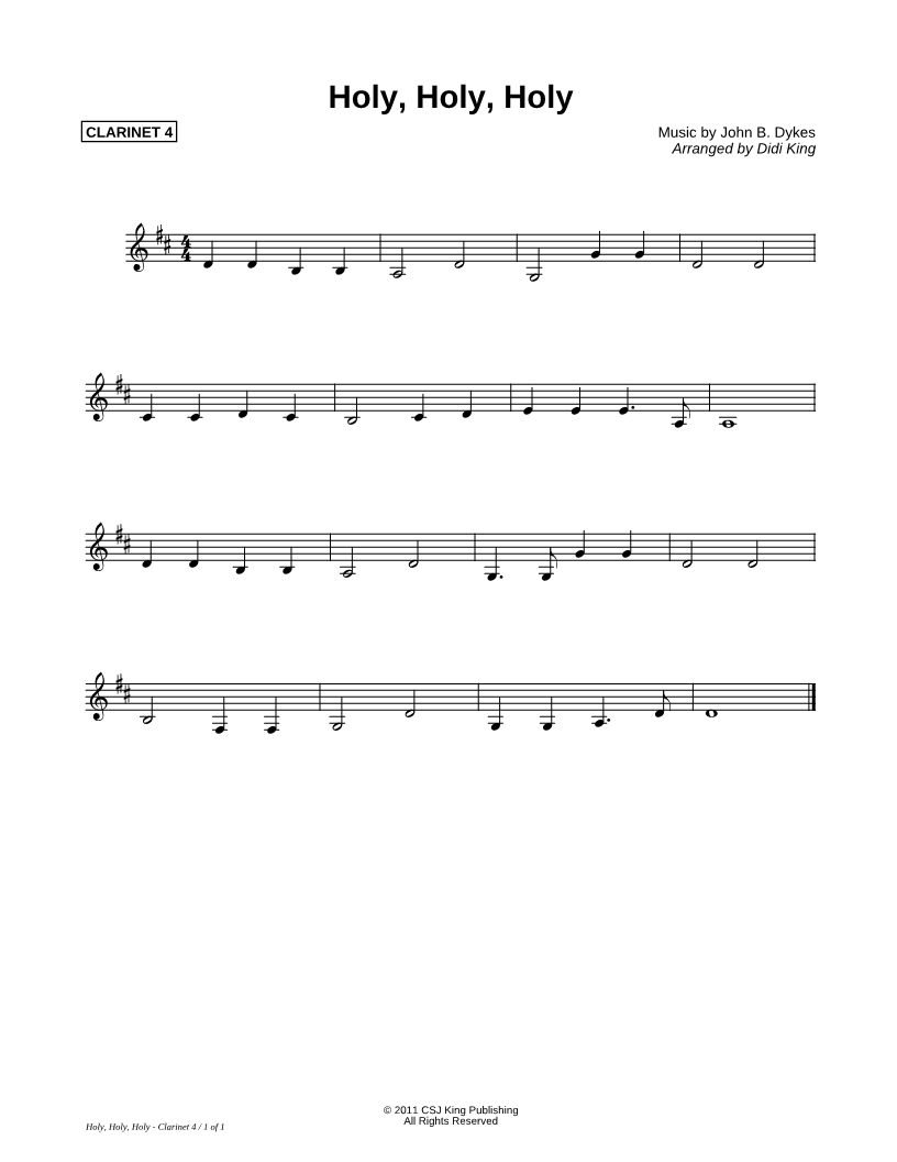 Holy, Holy, Holy - Clarinet 4 (Clarinet Quartet) |
