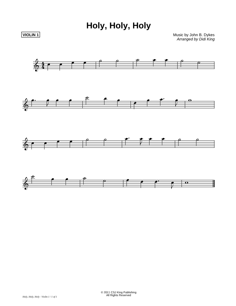 Holy, Holy, Holy - Violin 1 (String Quartet) |