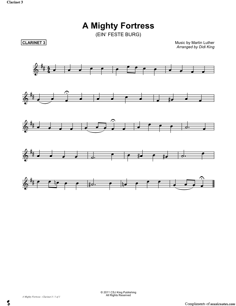 A Mighty Fortress Is Our God - Clairnet Part 3 (Clarinet Quartet) |