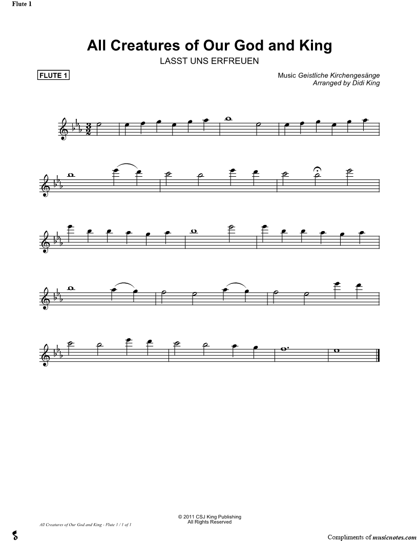 All Creatures of Our God and King - Flute 1 (Flute Quartet) |