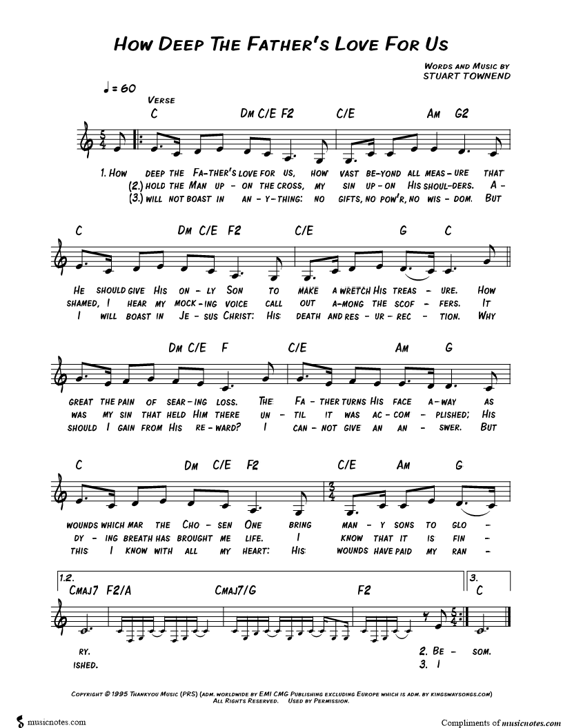 How deep the Father's love for us, how vast beyond all measure that He should give His only Son to make a wretch His treasure. |