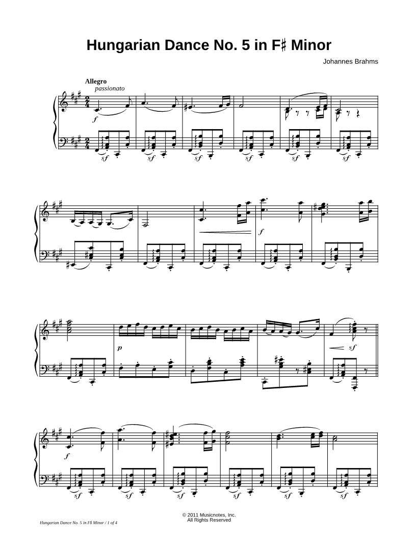 Hungarian Dance No. 5 in F# Minor |