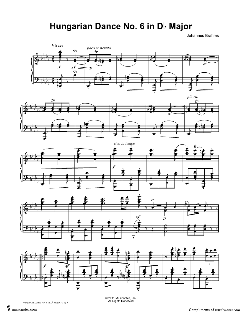 Hungarian Dance No. 6 in Db Major |
