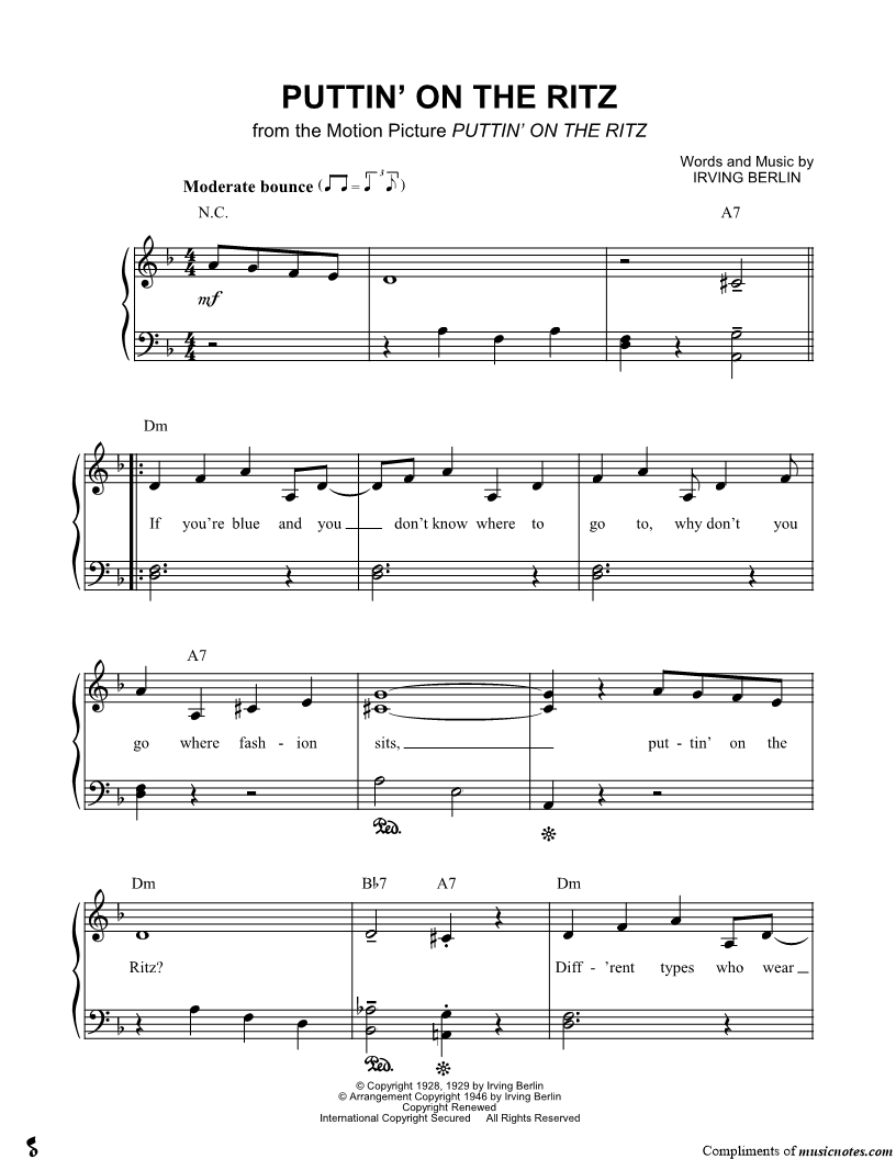 If you're blue and you don't know where to go to, why don't you go where fashion sits, puttin' on the Ritz? |