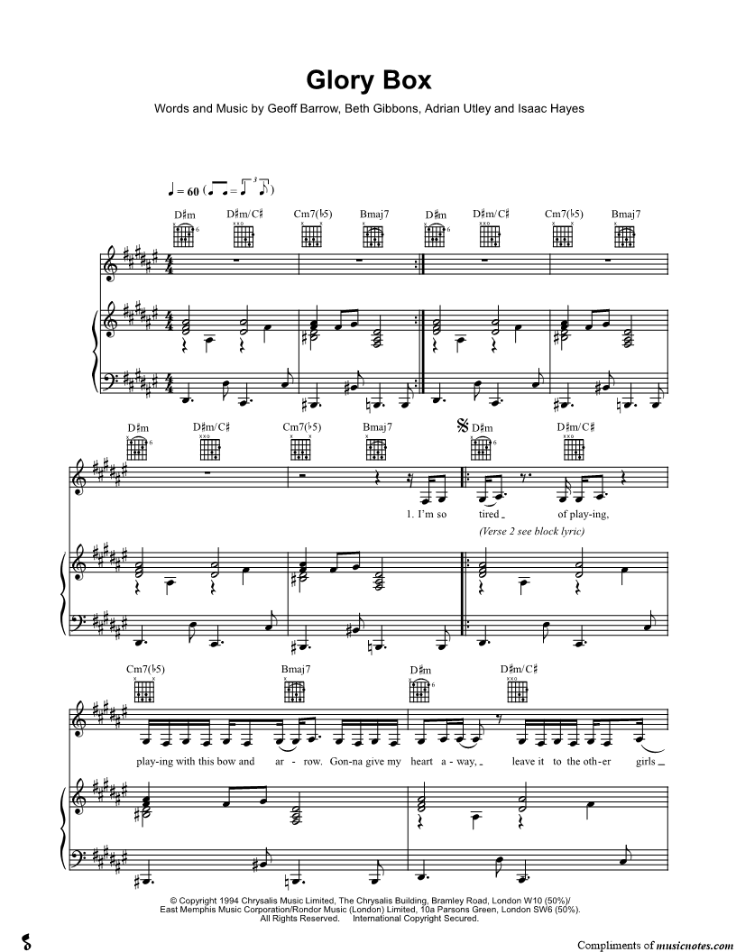 "This is a powerful song by Portishead & this arrangement adapts Glory Box to the piano..." Read reviews