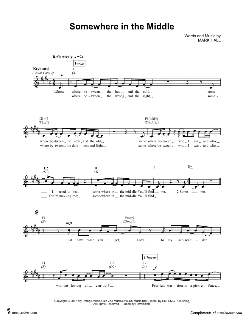 Somewhere between the hot and the cold, somewhere between the new and the old, some where between who I am and who I used to be; somewhere in the middle You'll find me. |
