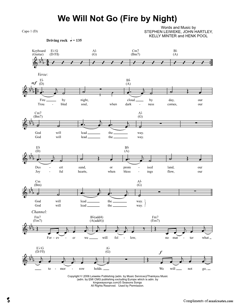 Fire by night, cloud by day, our God will lead the way. |