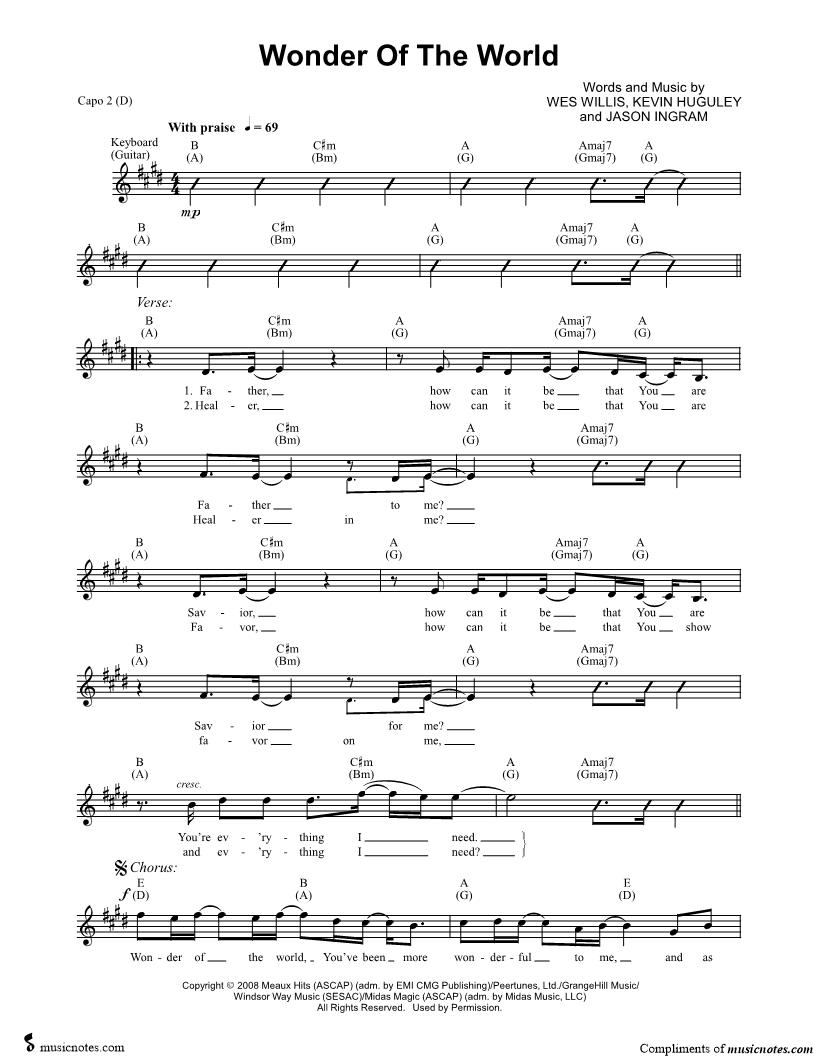 Many of the arrangements on Musicnotes have transpositions available, typically in C Major, as well as 3 sharps and 3 flats. If you do not see your desired key, you can request a transposition by reaching out to Customer Support.