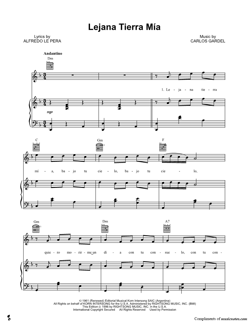 Lejana tierra mia, bajo tu cielo, bajo tu cielo, quiero morirme un dia con tu consuelo, con tu consuelo |