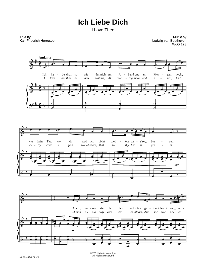 Ich liebe dich, so wie du mich, am Abend und am Morgen, noch war kein Tag, wo du und ich nicht theilten uns're Sorgen. |