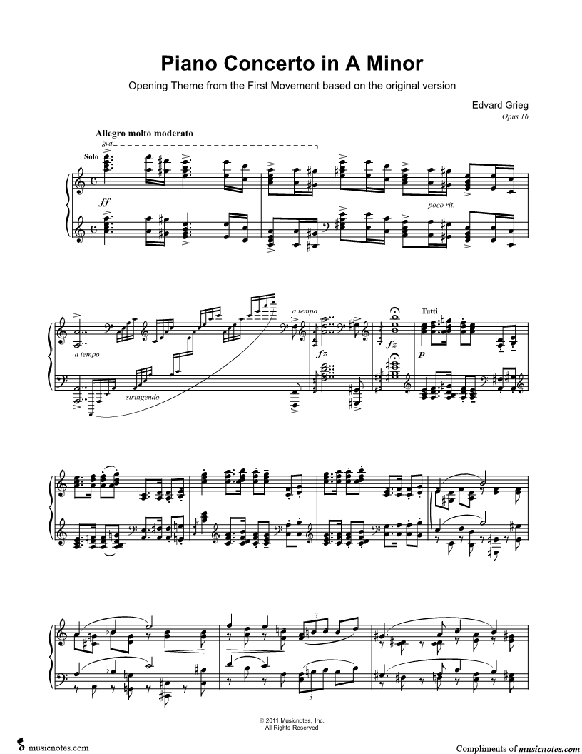 Piano Concerto in A Minor - Opening Theme from the 1st Movement |