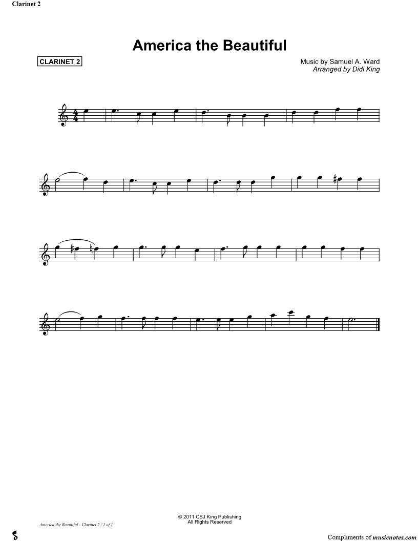 America the Beautiful - Clarinet 2 Part (Clarinet Quartet) |
