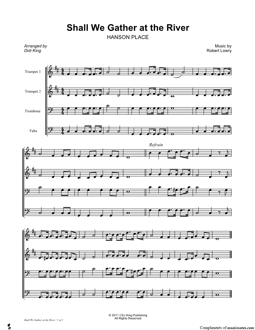 Trumpet 1, range: D4-D5 Trumpet 2, range: C#4-G4 Trombone, range: E3-C4 Tuba, range: G2-F3 | |