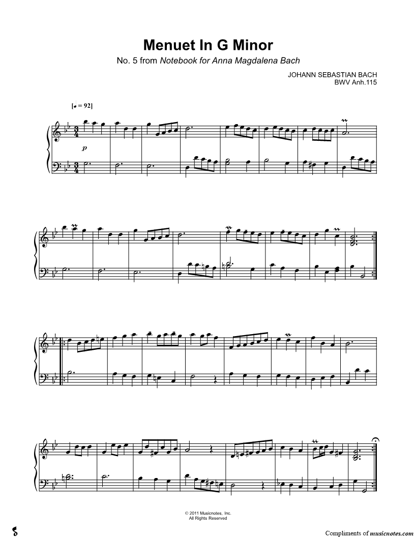 Menuet No. 5 in G Minor, from Notebook for Anna Magdalena |