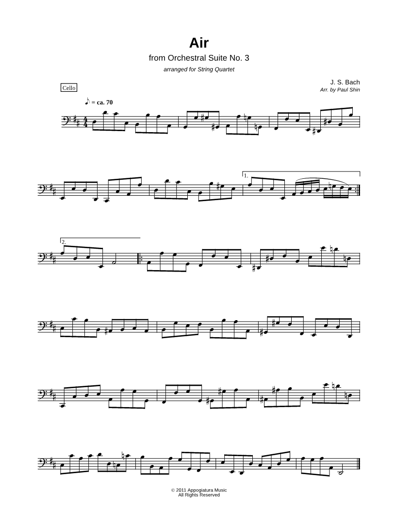 Air from Orchestral Suite No. 3 - Cello Part (String Quartet) |