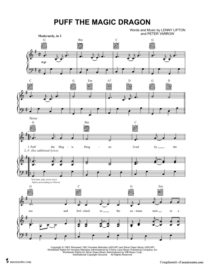 Puff the Magic Dragon lived by the sea and frolicked in the autumn mist in a land called Honalee. |