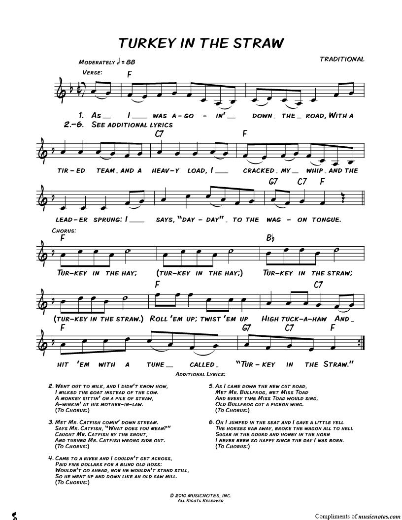 Leadsheets typically only contain the lyrics, chord symbols and melody line of a song and are rarely more than one page in length. Musicians will often use these skeletons to improvise their own arrangements. Leadsheets often do not contain complete lyrics to the song.