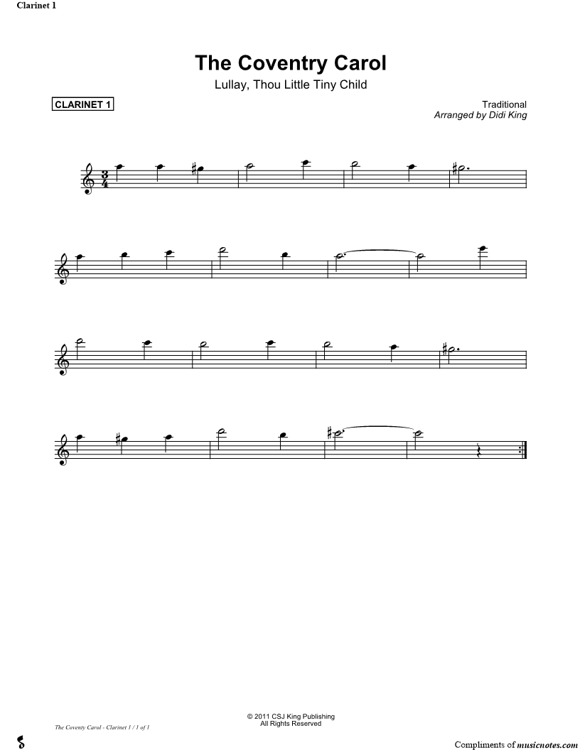The Coventry Carol - Clarinet Quartet Lullay, Thou Little Tiny Child