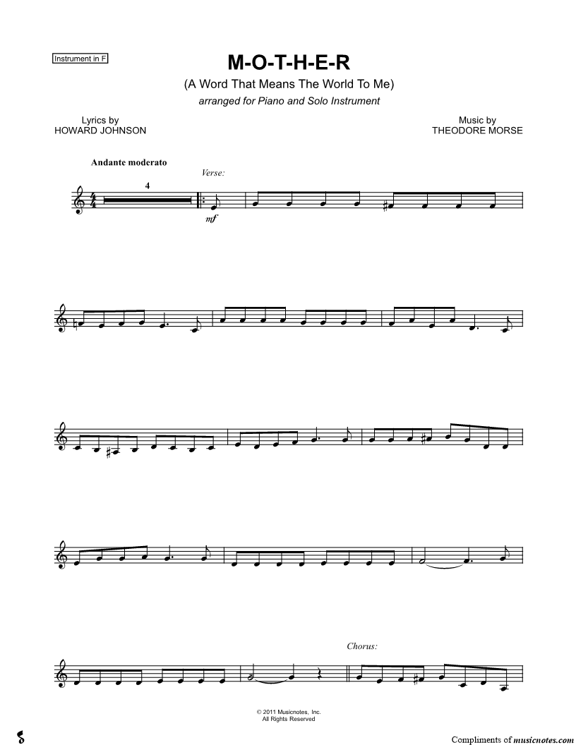 M-O-T-H-E-R - F Instrument & Piano A Word That Means the World to Me