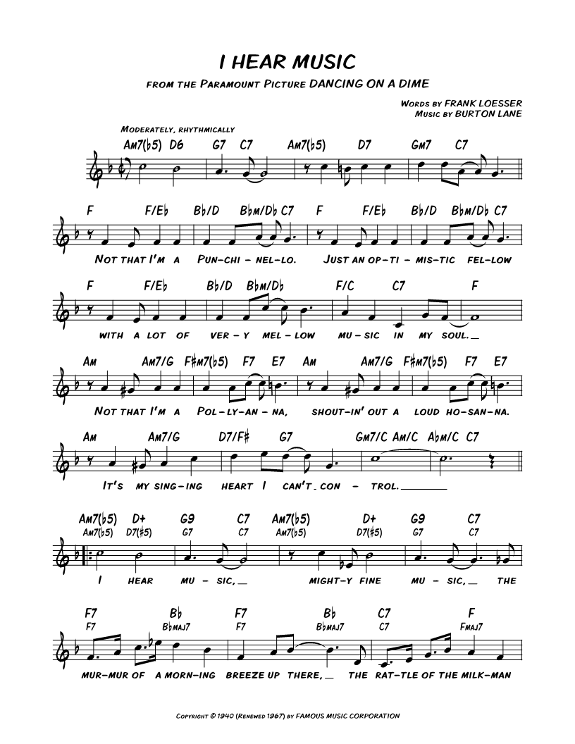 Leadsheets typically only contain the lyrics, chord symbols and melody line of a song and are rarely more than one page in length. Musicians will often use these skeletons to improvise their own arrangements. Leadsheets often do not contain complete lyrics to the song.