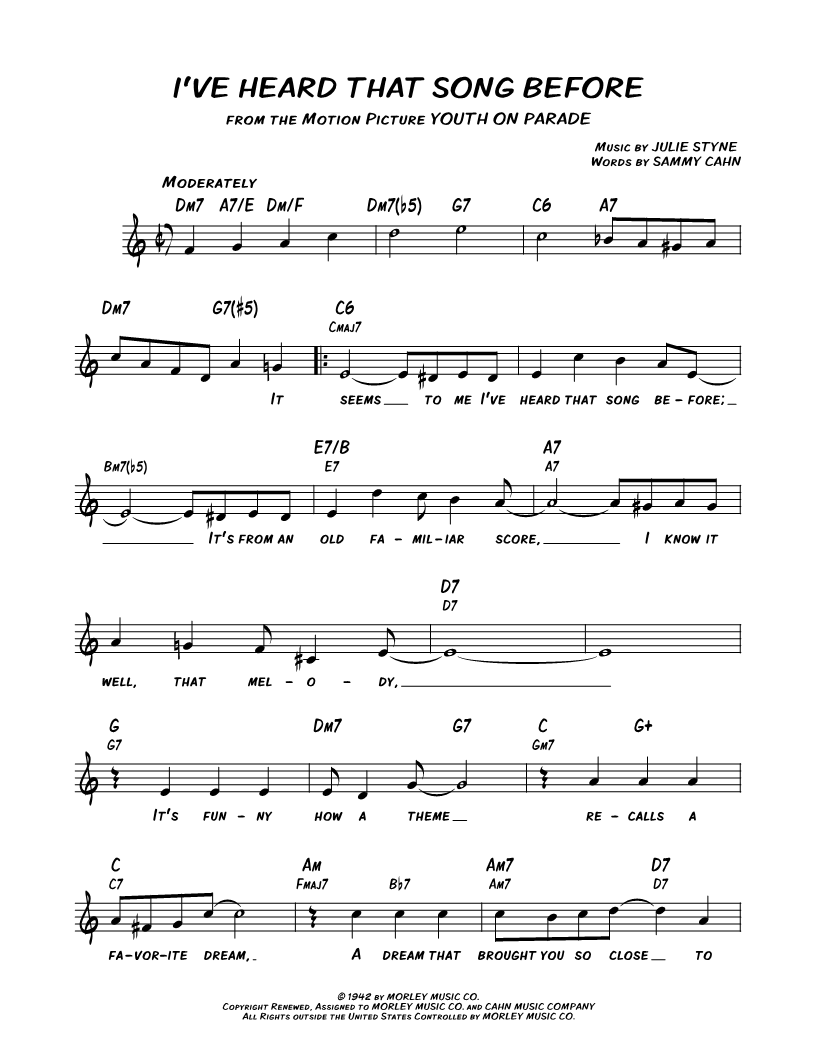 Leadsheets typically only contain the lyrics, chord symbols and melody line of a song and are rarely more than one page in length. Musicians will often use these skeletons to improvise their own arrangements. Leadsheets often do not contain complete lyrics to the song.