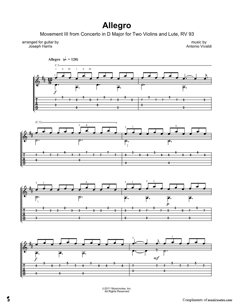 Concerto in D Major for Two Violins & Lute, RV 93: III. Allegro |