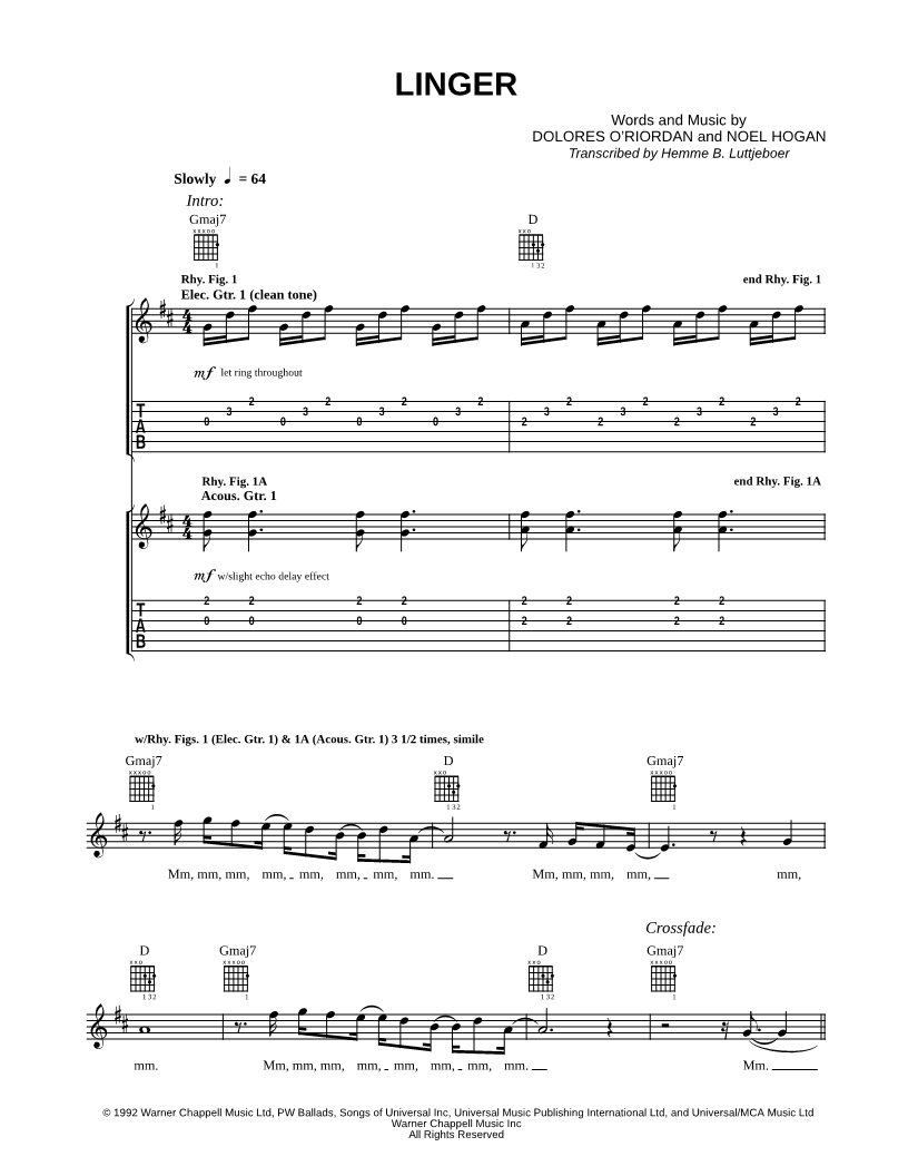 Guitar TAB Guitar/Vocal |