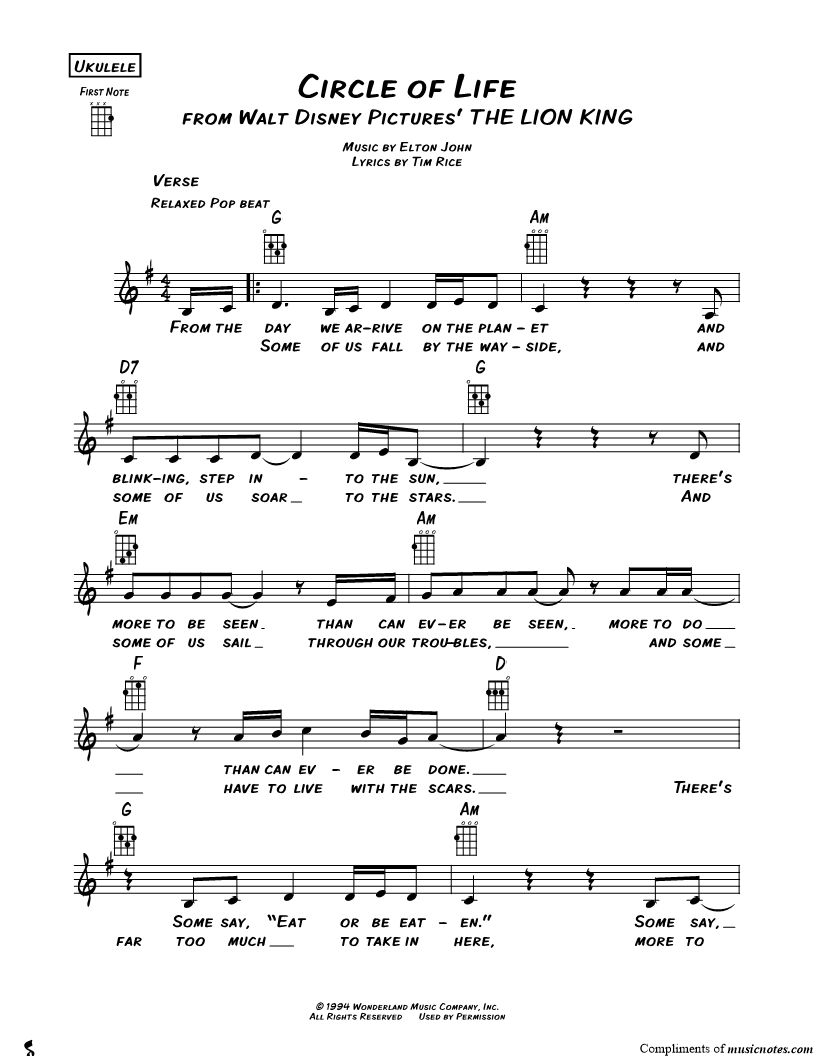 Ukulele/Vocal/Chords Leadsheet |