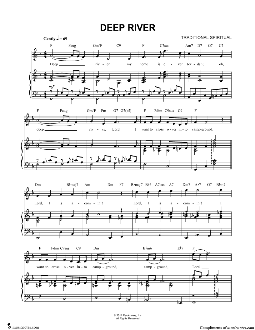 Deep river, my home is over Jordan; oh, deep river, |