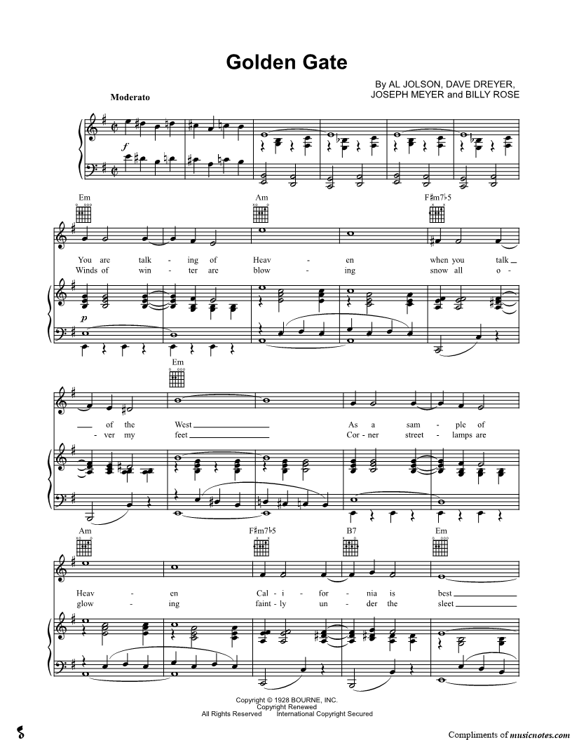You are talking of Heaven when you talk of the West As a sample of Heaven California is best I'm getting fed up on the rain and snow My weary heart is singing "Westward Ho" |