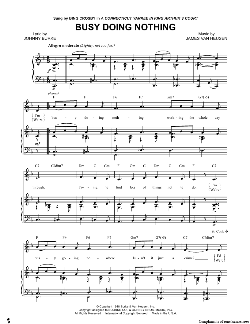 I'm busy doing nothing, working the whole day through. |