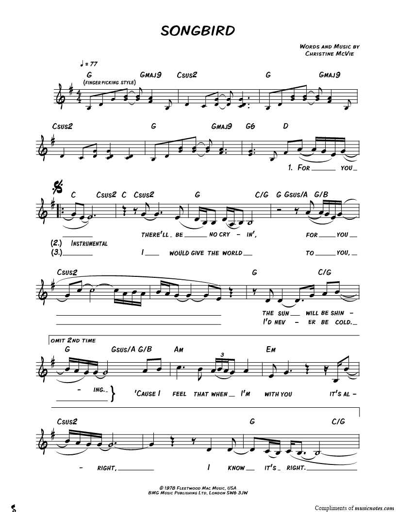 Leadsheets typically only contain the lyrics, chord symbols and melody line of a song and are rarely more than one page in length. Musicians will often use these skeletons to improvise their own arrangements. Leadsheets often do not contain complete lyrics to the song.