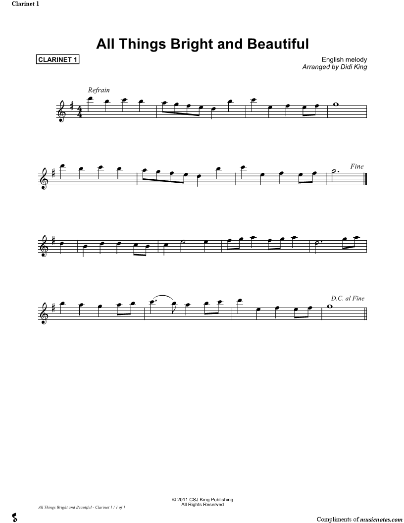 All Things Bright and Beautiful - Clarinet 1 (Clarinet Quartet) |