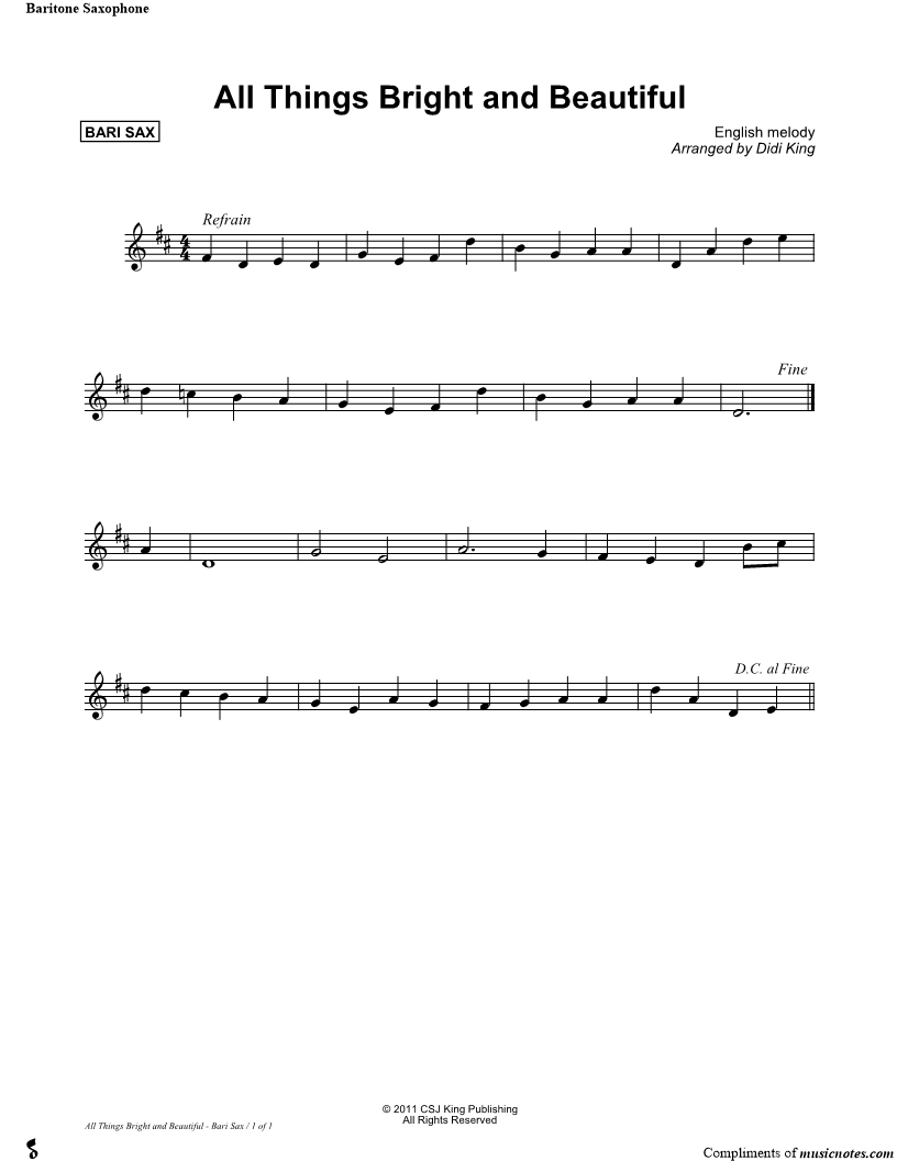 All Things Bright and Beautiful - Bari Sax Part (Saxophone Quartet) |