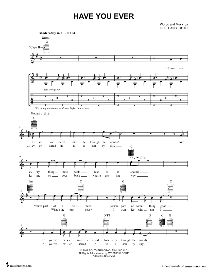 Lyrics/Melody/Guitar Guitar/Vocal Guitar TAB |