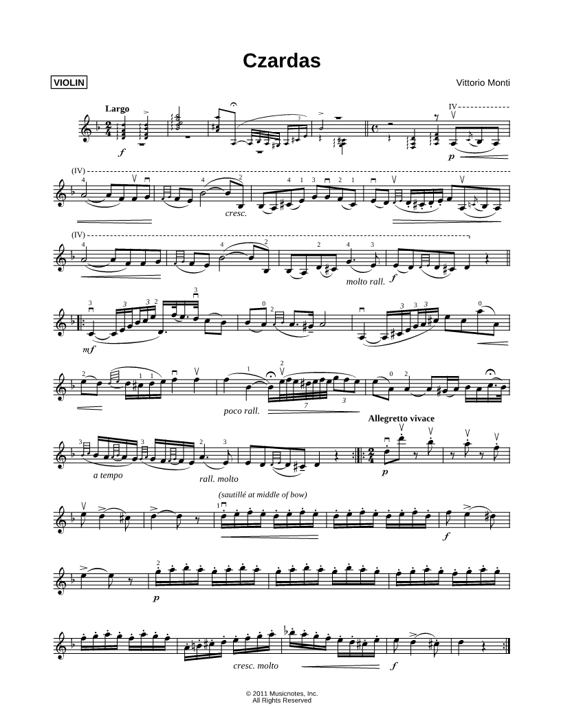 Czardas - Violin Part |