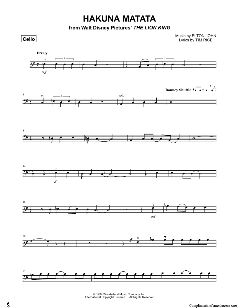 Hakuna Matata - Cello & Piano Accompaniment from Walt Disney Pictures' The Lion King