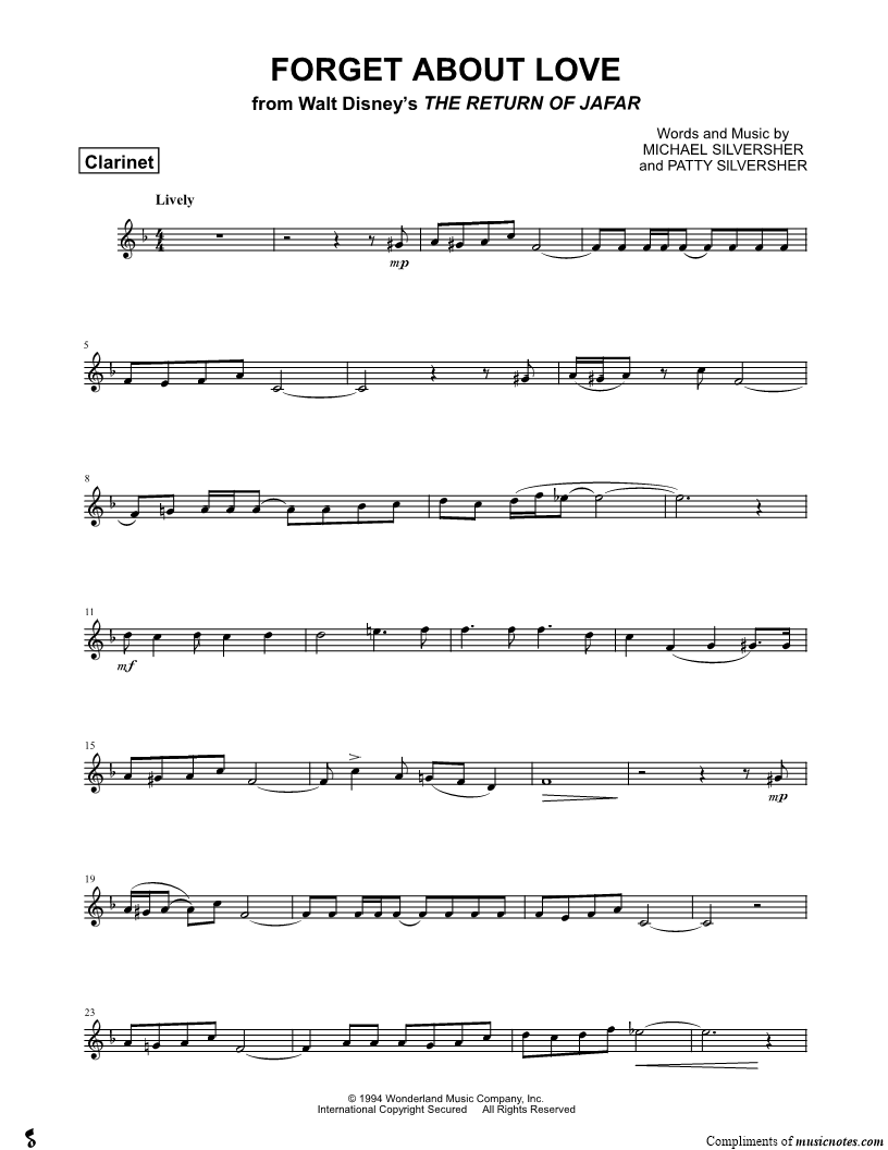 Forget About Love - Clarinet & Piano Accompaniment from Walt Disney's The Return Of Jafar