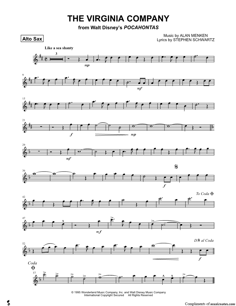 The Virginia Company - Alto Saxophone & Piano Accompaniment from Walt Disney's Pocahontas
