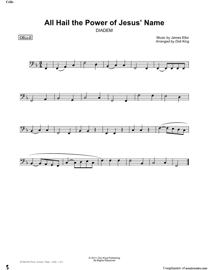 All Hail the Power of Jesus' Name - Cello (String Quartet) |
