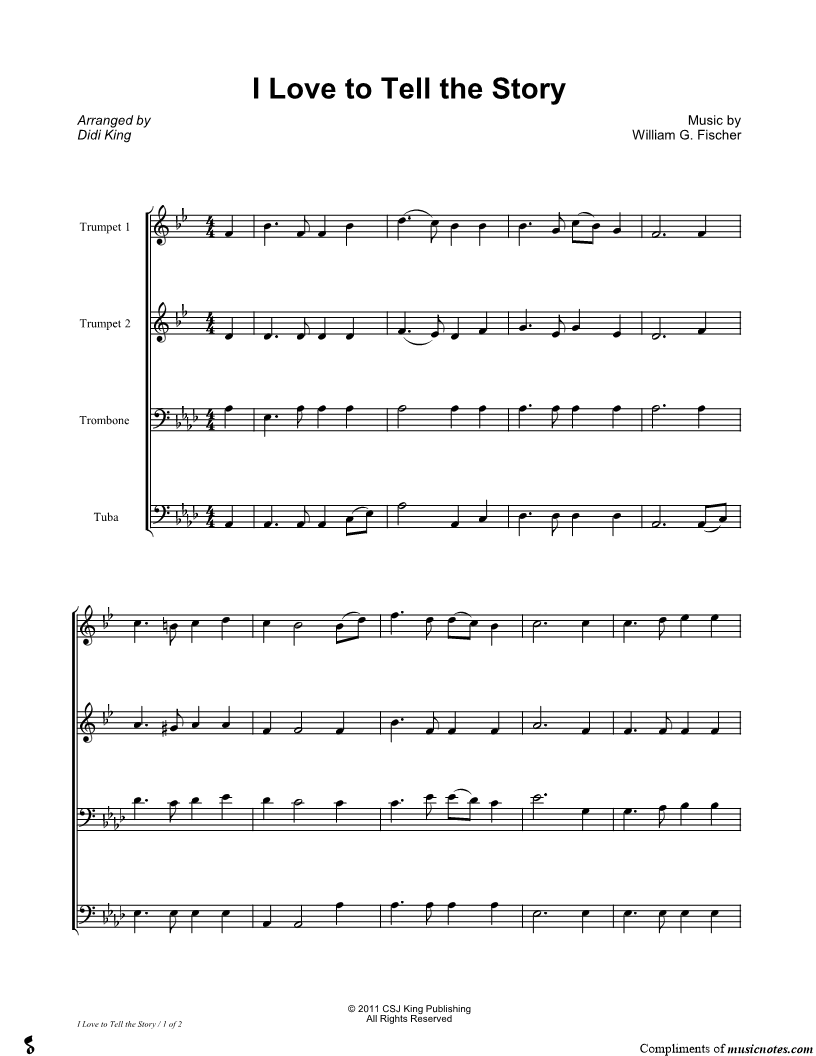 I Love To Tell the Story - Brass Quartet Score |