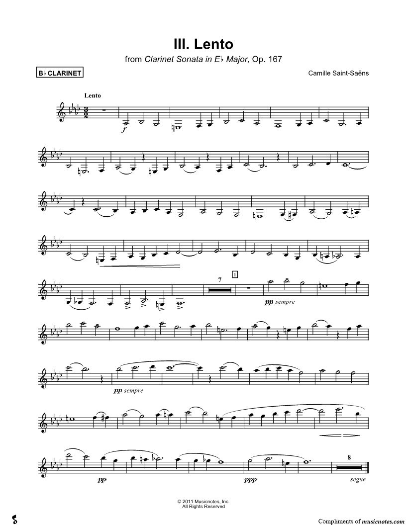 Clarinet Sonata In Eb Major Op. 167: III. Lento - Clarinet |