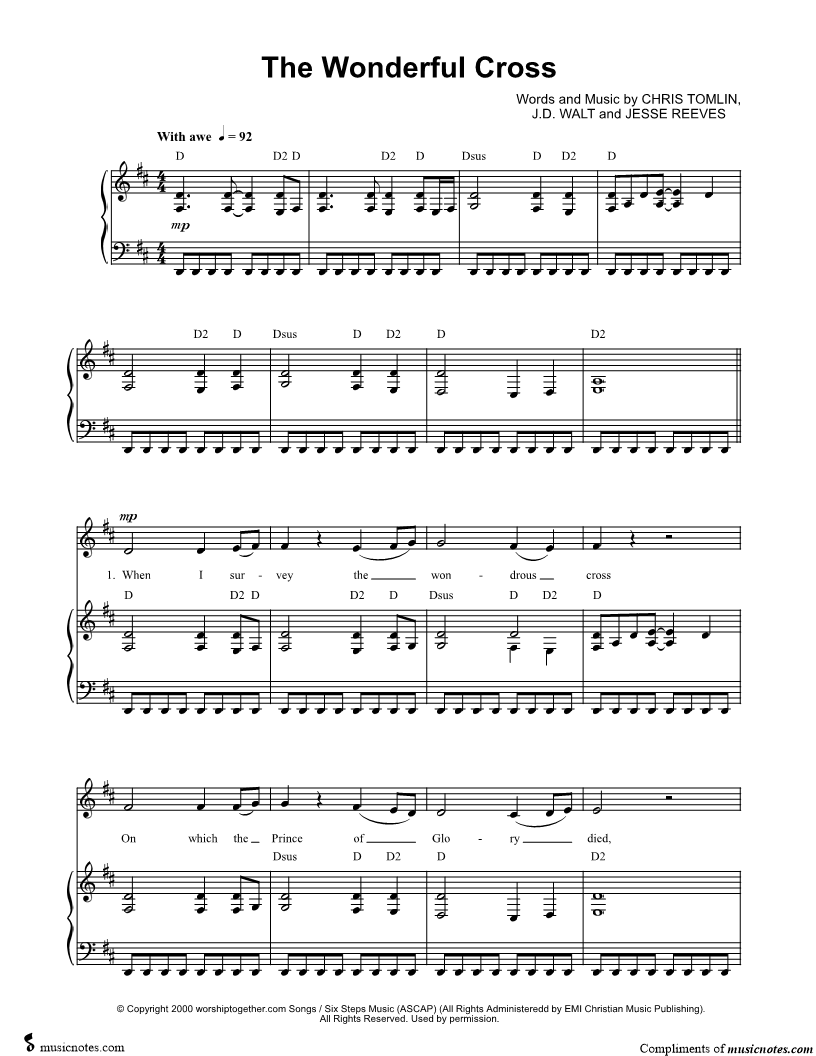 When I survey the wondrous cross On which the Prince of Glory died, |