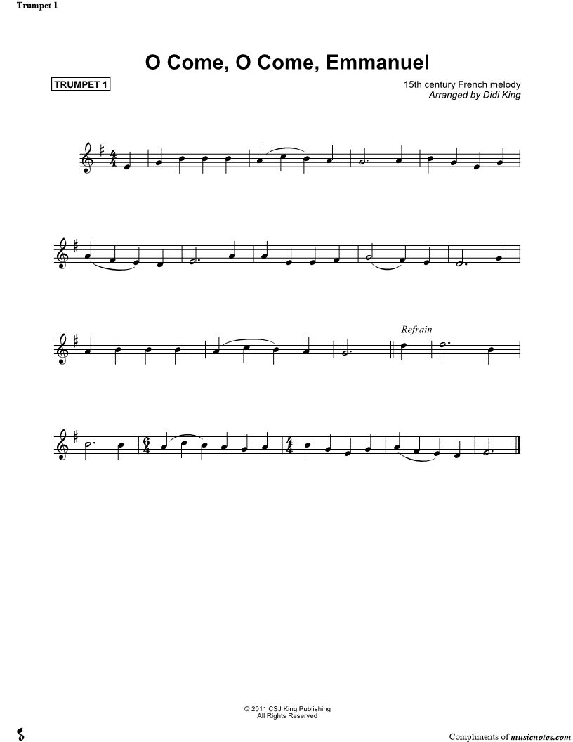 O Come, O Come, Emmanuel - Trumpet 1 (Brass Quartet) |